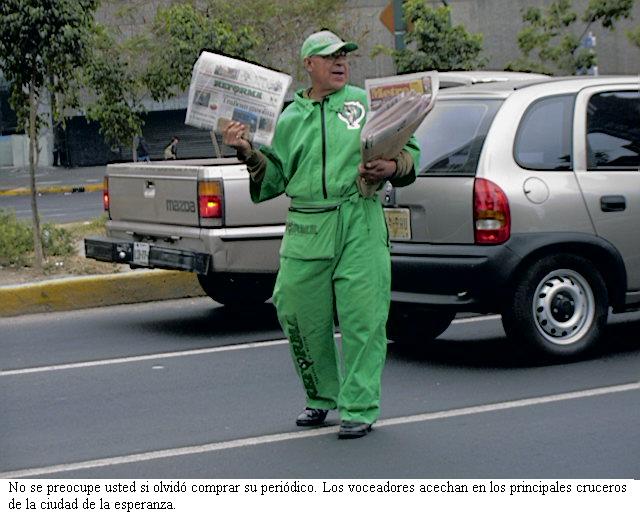 The reporters and editors just write the papers. Without the voceadores, their work would go for nought. Come to think of it, that’s what bloggers do most of the time too — distribute the news and opinion of the day — but we’re not up at 4 in the AM, working out of old houses on calles Edison and Mariscal behind the newspaper offices to assemble the papers, loading up trucks and motos and bicycles to distribute the papers all over el Metropolí… and dodging traffic and commuters on their way into the Metro, getting you the dozen or so competing dailies that all contradict each other and are all perfectly true (there’s more than enough news to go around in a metropolis of 20 million. And no one newspaper has the final word on anything. It’s rare that you’ll have even the same event — unless it’s a presidential election, the World Cup or a Papal visit all making the front pages. Usually, you get to pick and chose your news… again, just like with the blogs).