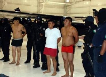Here are some particularly nasty “zetas” — self-confessed as such — presumably responsible for chopping off a dozen guys’ heads down in the Yucatan. Stripping them down to their skivvies for their mug shots is usually to show that they haven’t been beaten (at least not so you can see it)… but these are not any “special forces” veterans… unless they’ve really gone to seed.
