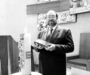 The candles, the heavy book, the styled artwork and uncomfortable furniture. This photo (from Desde la Fe) shows Monsignor Armando Colín Cruz, the new Auxilliary Bishop of the Archdiocese of Guadalajara, named to his post this week by Pope Benedict XIV. There’s nothing particularly earth-shattering in all this. Guadalajara is a bulkward of conservative Catholicism, so the Monsignor’s civvies aren’t indicative of a “liberal” attitude.