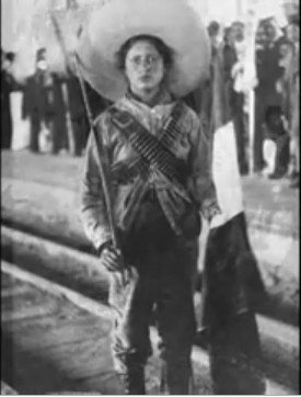 That would be lass, not lad. The photo is also found on the front cover of Elena Poniatowska’s Las Solderas, Women of the Mexican Revolution. All the photos in that book are from the collection of Agustin Victor Casasola found in the Fototeca Nacional of the National Institute of Anthropology and History in Pachuca, Hidalgo, Mexico.
