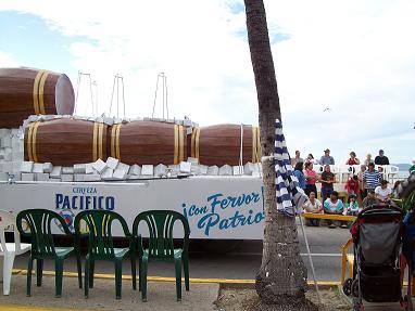 Of course, being a “history themed” parade and all, there were things like Conquistadors accompanied by Kumbia, and peruked 18th century ladies and gents dancing to techno-pop. And some lively grannies, decked out in “native costumes” who can still shake a leg when they want to. And, of course, the brewery float spelled it out — and the lads and lasses were giving their all, with great and patriotic fervor.