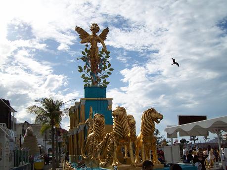 I hadn’t really planned on a pre-Lenten fast, but my gastro-intestinal system and I have been at odds the last couple of days. Whatever was the source of the dispute seems to have passed (and passed, and passed) and — fortified with a couple of shots of Pepto-Bismol with a side of Pedialite — I managed to make the Carnaval parade. I always figure that with the tourists amusing and bemusing the Mexicans the rest of the year, Carnaval is the occasion for the locals to pull out all the stops and amuse the foreigners, and figured it was my duty to reconnoiter the event and bring back a report.