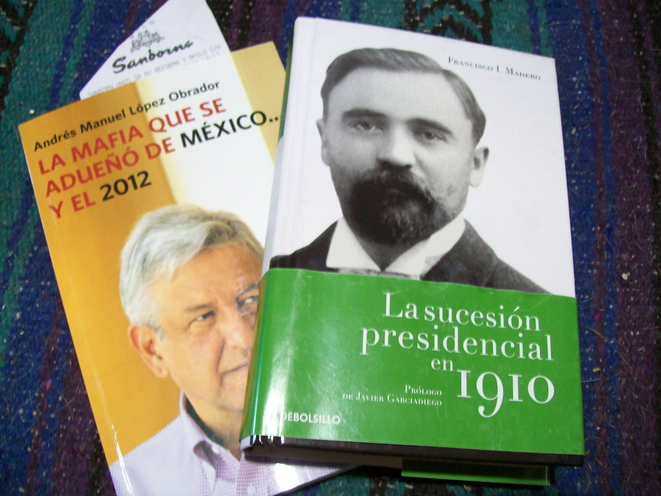 Books and speeches were Madero’s weapons in 1910… and, like Madero, Lopez Obradór is no prose stylist.  Of course, when Madero’s La sucesión presidential en 1910 came out, it was criticized for having no literary or academic content.  Which, as Francisco Bulnes, one of the more astute of Don Porfirio’s cientificos pointed out, was exactly what made it so dangerous…   it had mass appeal and was readable. By the way, it’s been reprinted — and available at Sanborn’s too.