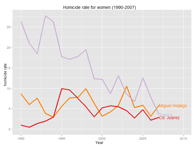 - The homicide rate for women, while certainly higher than average for Mexico, was lower than in other large urban areas and not significantly different from other border cities.