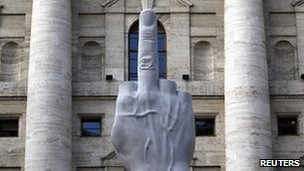 Absolutely nothing to do with Mexico, but I’m rather taken with Maurizio Cattelan’s sculpture “L.O.V.E.” in Carrara marble. It was recently(and temporarily) installed in Milan’s Piazza d’Affari. Which perhaps should be its permanent home. That’s the Milan stock exchange behind it.