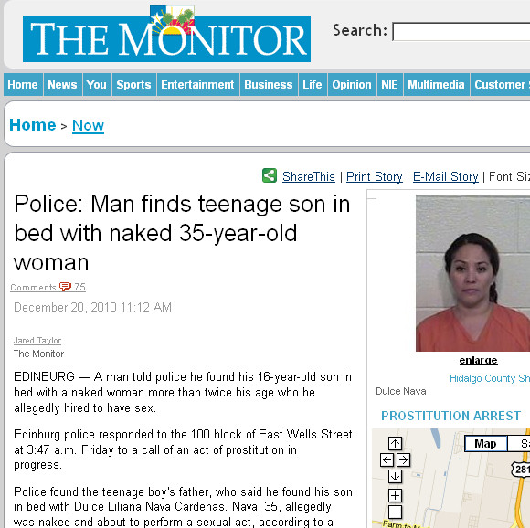 Sex tourism, and exploitation are, of course, serious issues, but at least in Mexico, the prostitute is not a criminal. Then again, the kid is a minor. While Mexico’s “age of consent” (18) is older than that in Texas (17), I kind of doubt there would have been anyone calling the police over a matter like this, and the “alleged perp” would not be facing a 10,000 dollar fine and 10 years in prison for “indecency with a child”.