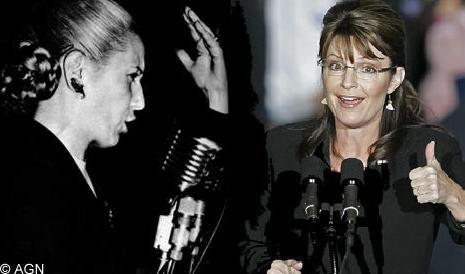 Sarah Palin was a cheerleader before she joined the basketball team, and swung a pom-pom or two, and enjoyed a pampered upbringing. Eva Duarte was a poor girl from the Pampas who left home at age 15 to make her own way in the world.