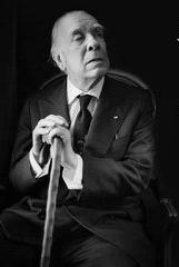 Handwritten in Spanish, the card is addressed from famed Argentinean author Jorge Luis Borges and it appears to carry his signature and a cartoon doodle.