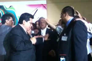 Which he may. But having Evangelical ministers pray for him in some sort of “laying on of hands” service adds a new wrinkle. Obviously, the taboo against appearing at a religious service has been broken. But, with the two largest party candidates slugging it out for the Roman Catholic pro-clerical vote, appearing at a minority religion’s service (and perhaps being a believer in one of the minority religions) either underscores the seriousness of the candidate’s pledge to treat all beliefs equally — which may resonate with the large number of Mexicans who want religious issues left off the political table, or… perhaps… he finds such spiritual exercises of personal benefit… or, it’s a horrible mistake that the photo has become public.