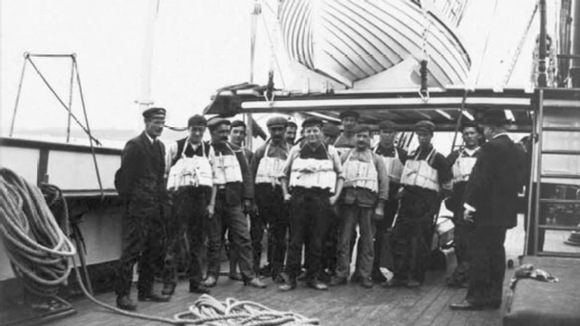 In the photo Father Browne took of engineering crewmen on a lifeboat drill, the fourth man from the right looks more like an American Indian than English or Irish and appears to be in his late 20s or early 30s… Antonio was 34 when the ship went down. Is this an unknown Mexican hero?