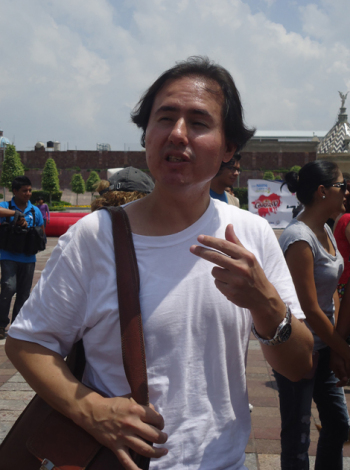 Professor Manuel Berumen, who was arrested for kissing his opposite gender one-and-only legitimate wife in a public square in León on Saturday.