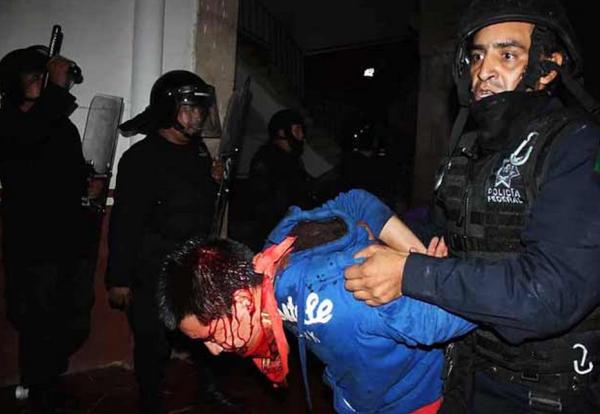 This week the Associated Press reported the following story, “Mexico Raids Seized Campus, Battle Protesters.” As with most of the stories the AP publishes, this online article appeared in countless of major American media outlets, like CBS News and TIME. However, even though the story chronicled how the police in Michoacán, Mexico raided three teachers colleges in response to student protesters who had been “hijacking buses and trucks for a week to protest curriculum changes,” the AP story did not include any of the images from the Michoacán raids that have gone viral through social media networks.