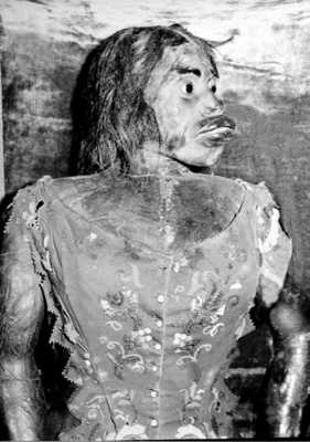 In 1921, the two embalmed bodies were bought by Haakon Lund, manager of the biggest funfair in Norway at the time. Julia Pastrana and her son were then displayed periodically up till the 1950s. When Lund’s funfair put them on display again in 1970, there were strong reactions in the newspapers. A USA tour followed, before another display in Norway in 1973. The remains were then rented out to a Swedish funfair, which led to a ban on the display  by the Swedish authorities. The remains were put in storage in Groruddalen in Oslo in 1976, and during a burglary performed by adolescents, the arm was torn off the embalmed remains of Julia Pastrana. The police took her remains with them, while the remains of her son, reportedly badly damaged, were seemingly discarded.
