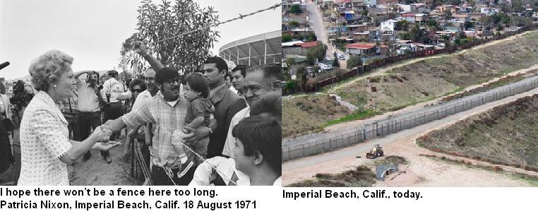 Wow, the old Friendship Park marking the Guadalupe Hidalgo survey- I haven’t been down there for more than 25 years. I understand the Park’s actually between the fences now, a sort-of no man’s land, but one can go to the newer Border Field State Park. I remember Pat Nixon’s ribbon-cutting as kid, and I think she planted a tree, too. Somehow I just can’t see Michelle Obama reaching across that barbed wire. JFK thought Nixon had no class, but I doubt this situation would have been likely for Jackie either. Pat was a lovely lady, and the Nixons liked Mexico very much (familiarity as native Californians- ok, Pat was born in Nevada, but she came to the state as a baby- probably made the difference.). “Even when people can’t speak your language, they can still tell if you have love in your heart.” I purloined that quote from the RN Foundation, but the sentiment is true.