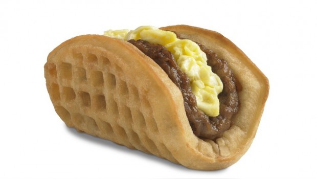 From THOSE PEOPLE responsible for convincing the educationally challenged of the world that some corn-based napkin holder in some way resembled a taco comes what Eater.com calls “the latest in breakfast hybrid technology.” Which is sort of like Dr. Frankenstien calling his monster the latest in zombie-hybrid technology, I guess.