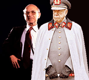 “Lily Langtree” (Memory in Latin America) provides links to British and U.S. media reports on the 40th anniversary of the 11 September 1973 blow to Latin American democracy in the name of making Chile safe for I.T.T. … and turning the Chileans — much like the Jews and gays and gypsies in the occupied territories of 1939-1945 Europe into guinea pigs for insane experimenters. In Chile’s case, the made scientist was Milton Freidman. Unlike the Nazi “scientists” went off on a tangent based on the half-baked theories of the long dead Arthur de Gobineau and Francis Galton, Friedman personally convinced the Pinochet regime to implement economic “reforms” based on his understanding of the “philosophy” of screenwriter and fantasy novelist, Ayn Rand, by “whatever means necessary”.