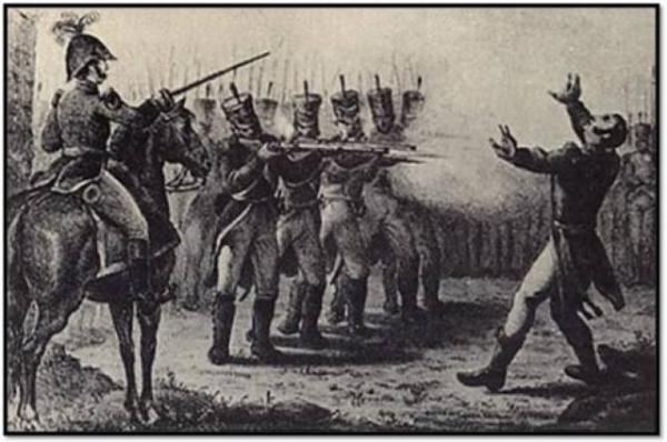 Emperor Agustín came to a tragic or foolish…or maybe heroic end. When the Spanish landed another token invasion force in 1824, Agustín sailed back to México, planning to help drive out the invaders and retake his throne. After all, Napoleón had done the same thing, returning from exile to drive the Bourbons out of Paris and have the army restore him as emperor of the French, but…México was not France. Congress had warned Agustín he would be shot if he returned. He did…and he was.