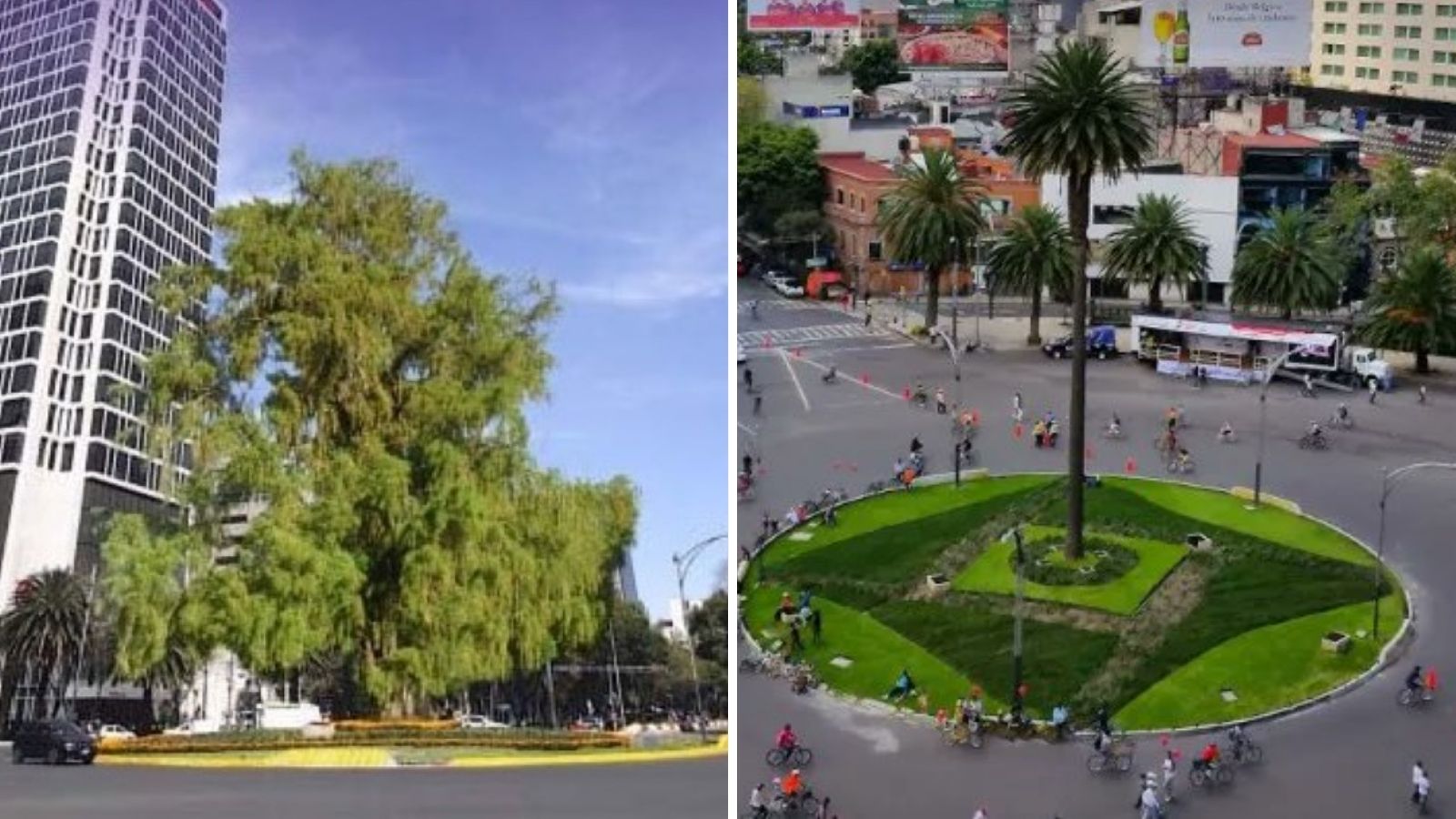 Left: Ahuehuete. Right: the palm before it came down.