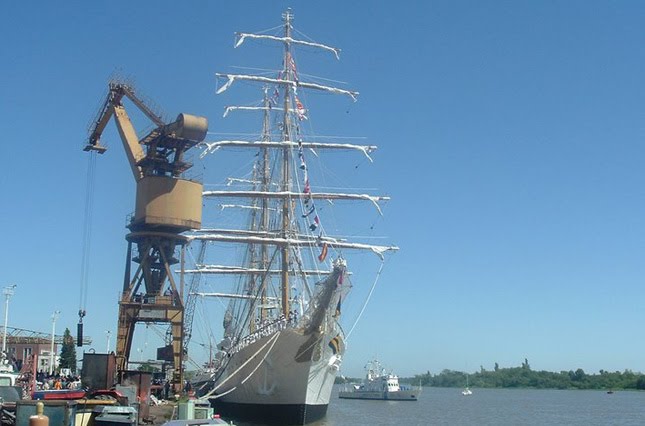 That”100-metre naval vessel” is ARS Libertad, is a a “tall ship” — an old fashioned sailing frigate used for training naval cadets and for showing the Argentine flag on goodwill missions. Singer, or… I suppose to be accurate, Singer’s Cayman Islands company, has been on an ill-will mission: court shopping for someone to enforce judgements by New York and London courts against Argentina (the whole country) and with ARS Libertad scheduled to dock in Tema, Ghana… got a Ghanian injunction to hold the frigate pending hearings on the entire matter… in Ghana, which has nothing to do with all this, really.