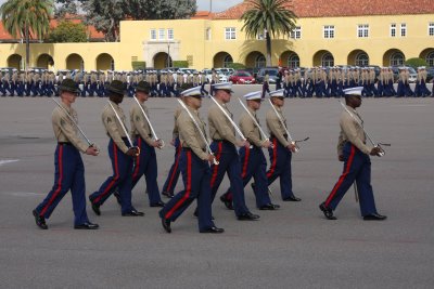 enemies in a small way. In honor of their fallen comrades, and in appreciation — if that’s the right word — of their Mexican foes determined defense, the blue stripe on the leg of the formal uniform was changed to a red stripe, to recognize the amount of blood they were forced to shed taking the gateway to “The Halls of Montezuma”.