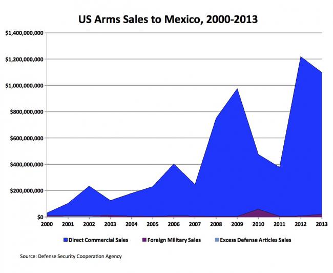 Mexico has been on a buying spree for U.S. military equipment, especially helicopters and armored vehicles, with purchases amounting to more than a billion dollars in the last 12 months. U.S. Northern Command chief Admiral William Gortney said the combined deals represent “a 100-fold increase from prior years.” For a military supposedly proud of its independence from the United States, it is a dependent client.