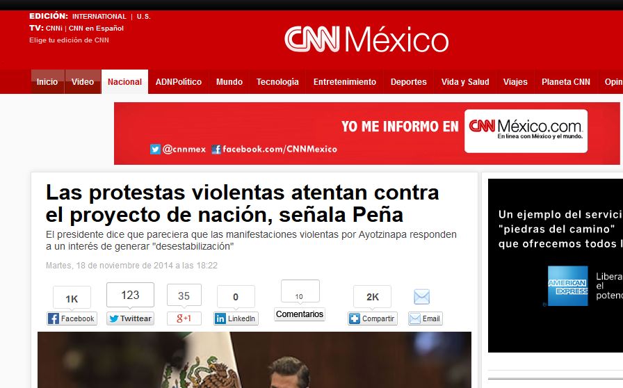 When it comes to our dismissal of anarchist violence, the government discourse is by far the most dangerous. Witness Peña, really angry, suggesting Carmen Aristegui is probably complicit in a conspiracy to destabilize not only his government but, according to him, something much more worth defending… a cause: the “national project”.